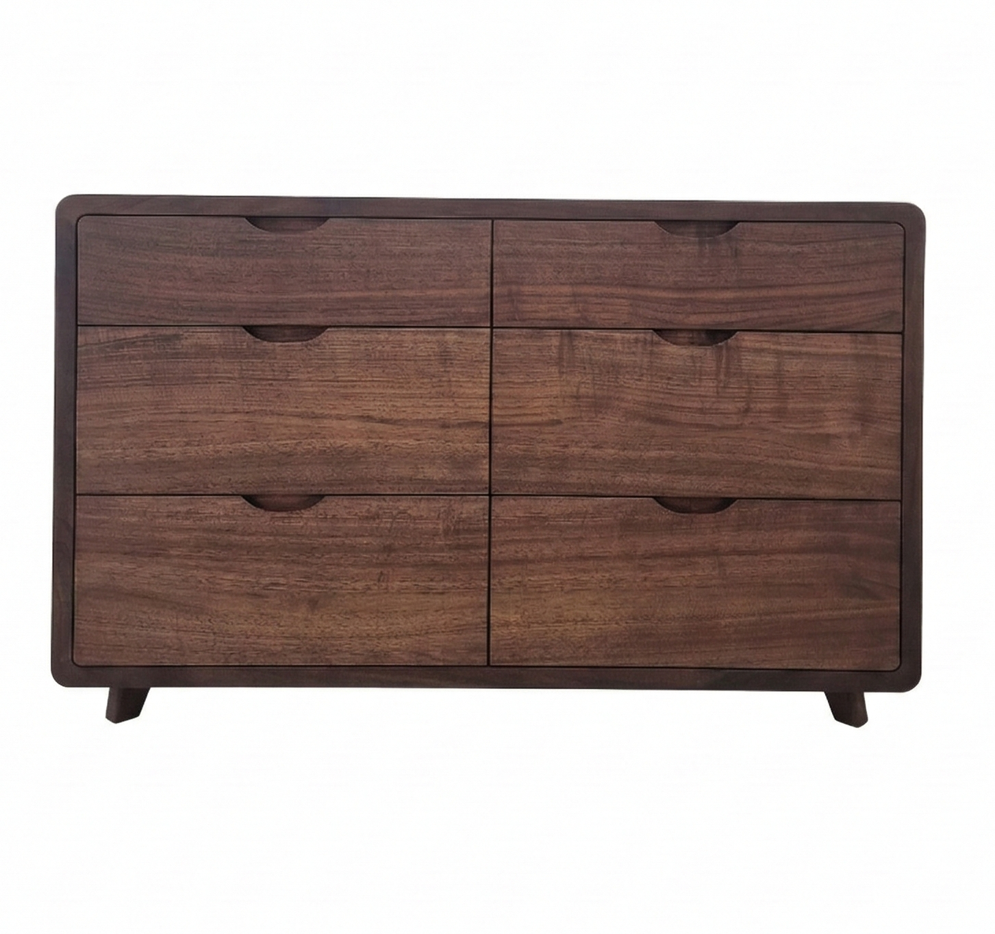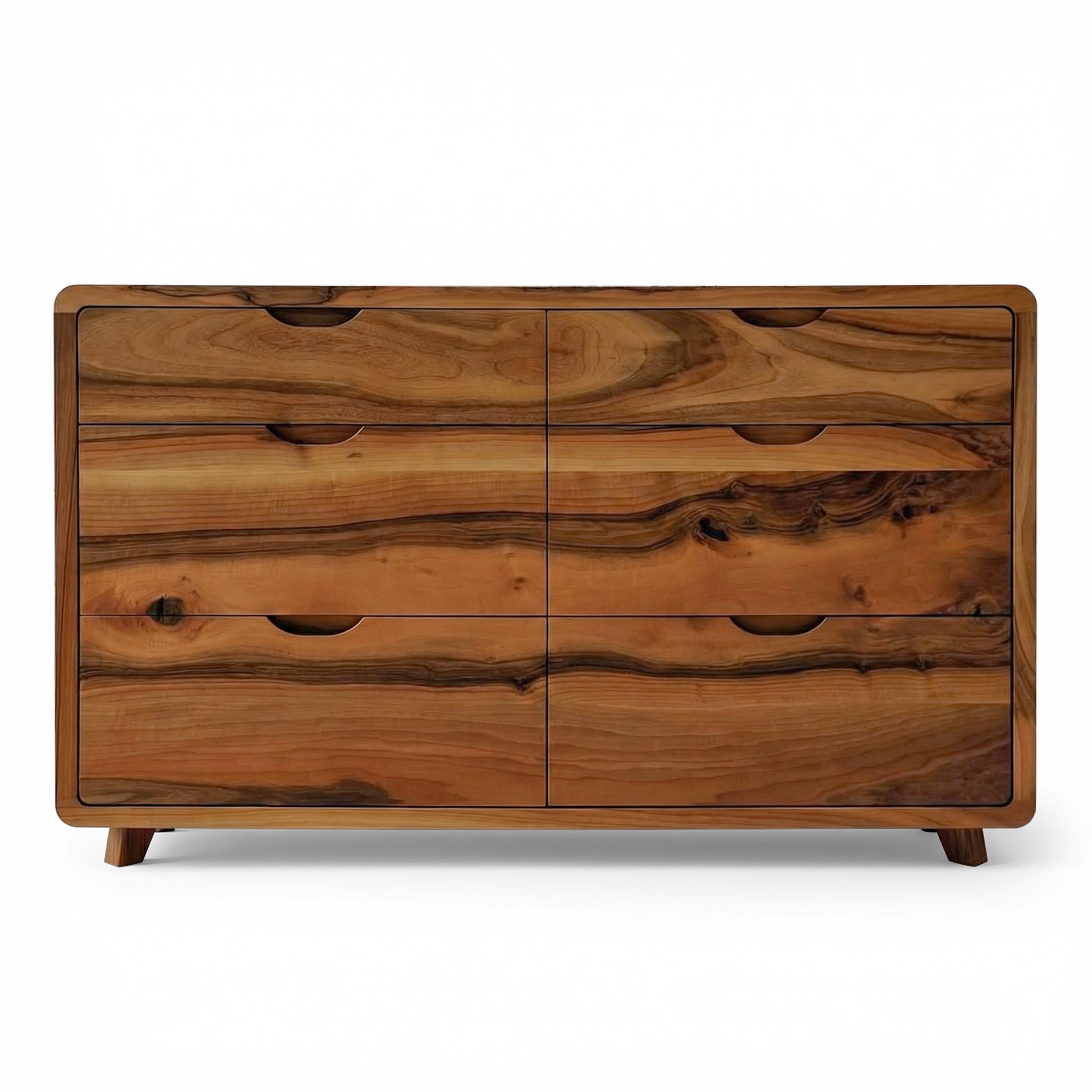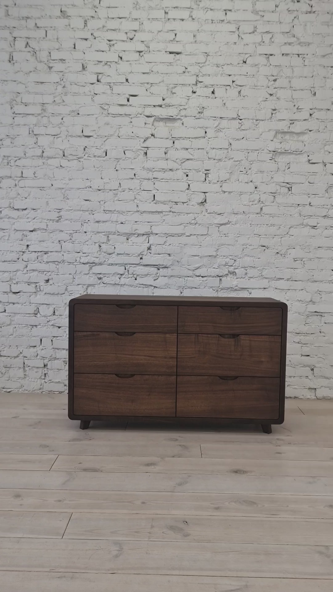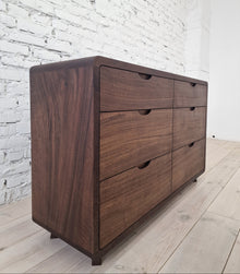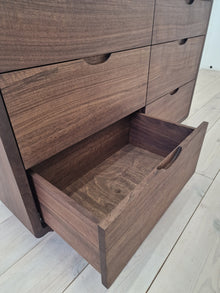 The Ami Walnut Chest of Drawers is a handcrafted, elegant piece of solid walnut. It offers a timeless design with ample storage space. The sideboard showcases the natural beauty of the wood's grain and is built to last with premium craftsmanship. Customisable in size, it's ideal for living or dining spaces, adding functionality and aesthetic appeal.